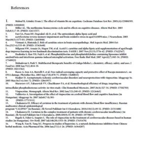 Ginkgo biloba leaf extract contains two main bioactive constituents—ginkgoflavonglycosides (24%) and terpene lactones (6%)—and is used in the formula because of its reported stress-alleviating and memory-supportive effects as well as its ability to support the health and integrity of neurons. The mechanisms of action may be mediated through its antioxidant, antihypoxic, and microcirculatory actions.[7] The Ayurvedic herb Bacopa monniera has reported cognition-acilitating, cytokine-modulating, and anti-stress effects. These effects are thought to be mediated through its remarkable free-radical–scavenging capacity and its protective effect on DNA cleavage.*[8] Vinpocetine is derived from vincamine, an alkaloid extracted from the periwinkle plant (Vinca minor). It has been used extensively in Eastern Europe, and more recently in the United States, to support cerebrovascular health and healthy mental function. Vinpocetine’s roles in supporting brain function are multi-modal and include its influence on cerebral circulation, its antioxidant activity in the brain, and its role in affecting ion channels and cytokine production.[9-11] Together, these varied actions support overall brain tissue health and function. The efficacy and safety of vinpocetine have been tested and validated by in vitro, animal, and human studies. Many human studies demonstrate positive results in neurologic functioning—primarily related to capillary blood flow and cellular metabolism.*[12-15]